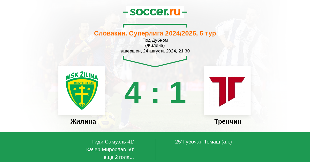 Словакия. Суперлига 16.09.2017 Жилина Логотип футбольный клуб Жилина 5:1 Логотип футбольный клуб Тренчин Тренчин