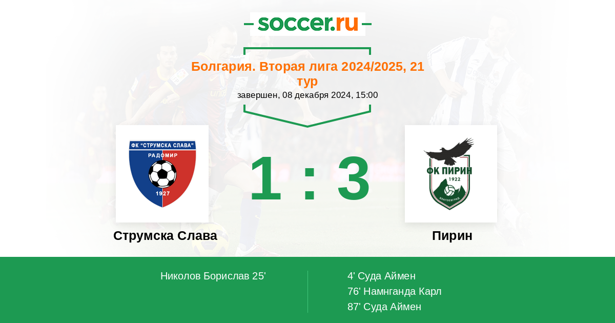 Матчи Болгария. Вторая лига 2024/2025