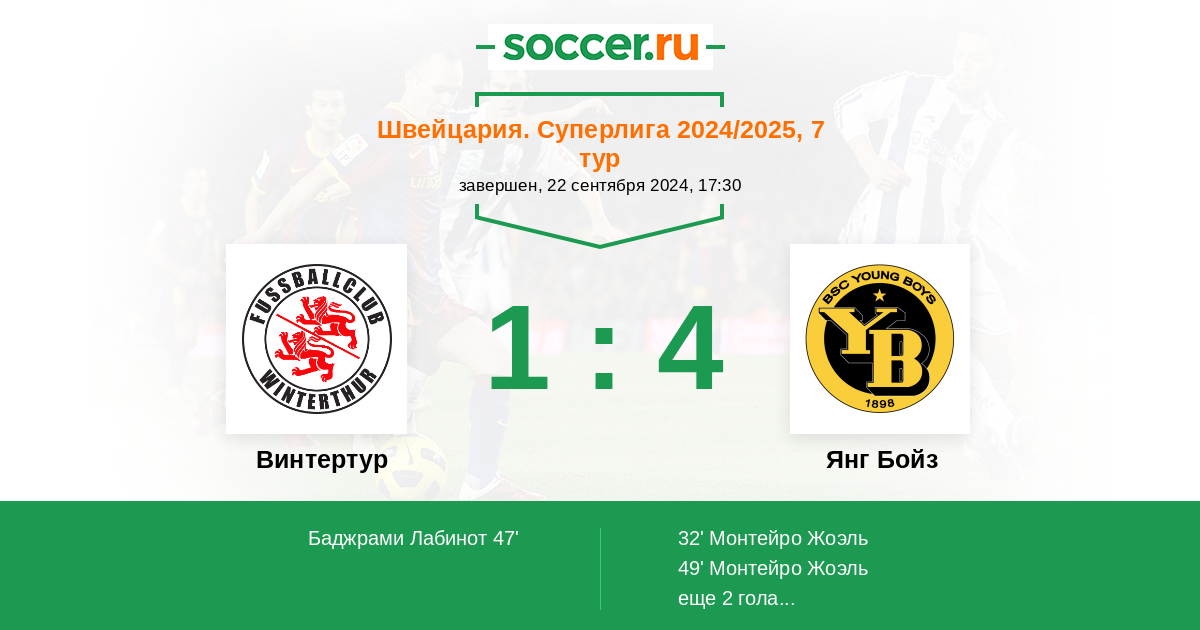 Янг Бойз 33:10 20:4 13:6