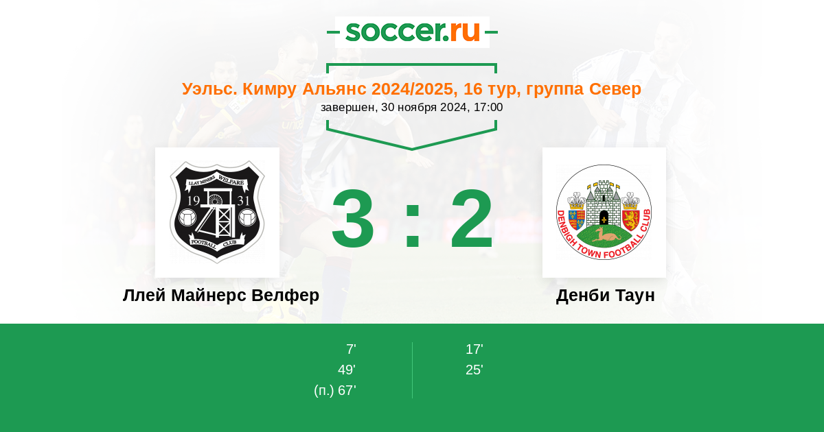 Ллей Майнерс Велфер 0:5 0:0 0:5