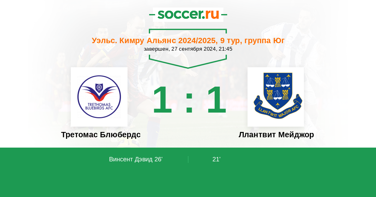 Ллантвит Мейджор 4:4 2:2 2:2