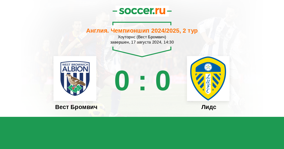 Англия. Чемпионшип 18.08.2023 Лидс Логотип футбольный клуб Лидс 1:1 Логотип футбольный клуб Вест Бромвич Вест Бромвич
