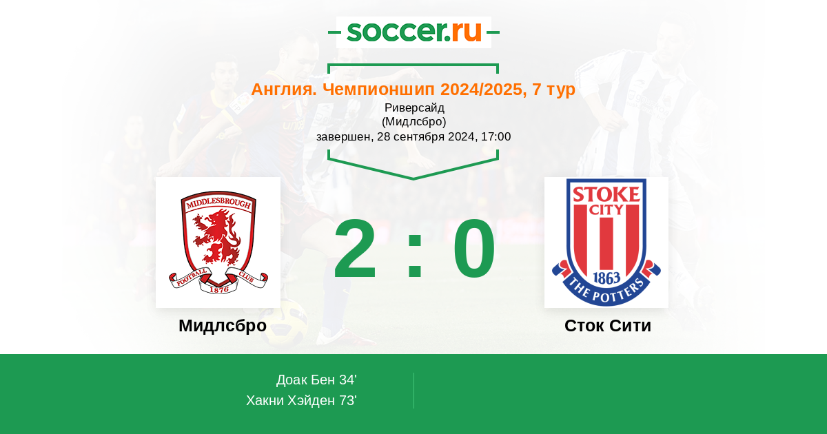 Англия. Чемпионшип 30.09.2025 Мидлсбро Логотип футбольный клуб Мидлсбро 0:0 Логотип футбольный клуб Сток Сити (Сток-он-Трент) Сток Сити