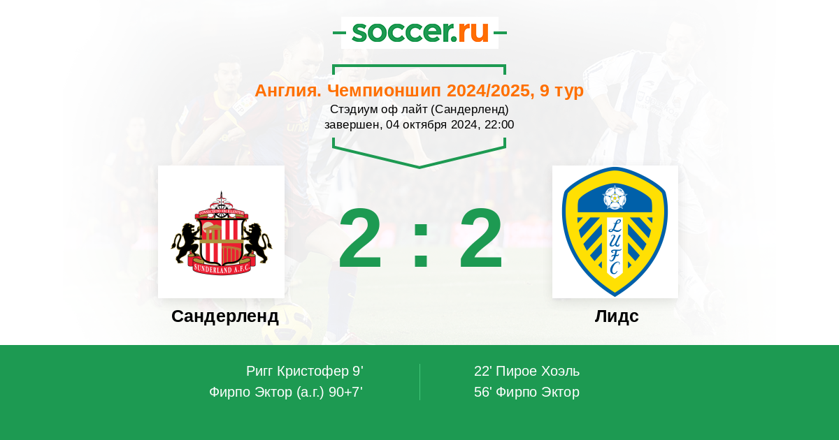 Англия. Премьер-Лига 28.12.2025 Сандерленд Логотип футбольный клуб Сандерленд 1:1 Логотип футбольный клуб Лидс Лидс
