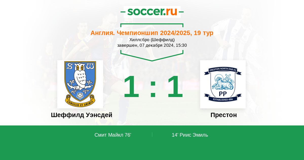 Англия. Чемпионшип 29.12.2024 Престон Логотип футбольный клуб Престон 3:1 Логотип футбольный клуб Шеффилд Уэнсдей Шеффилд Уэнсдей