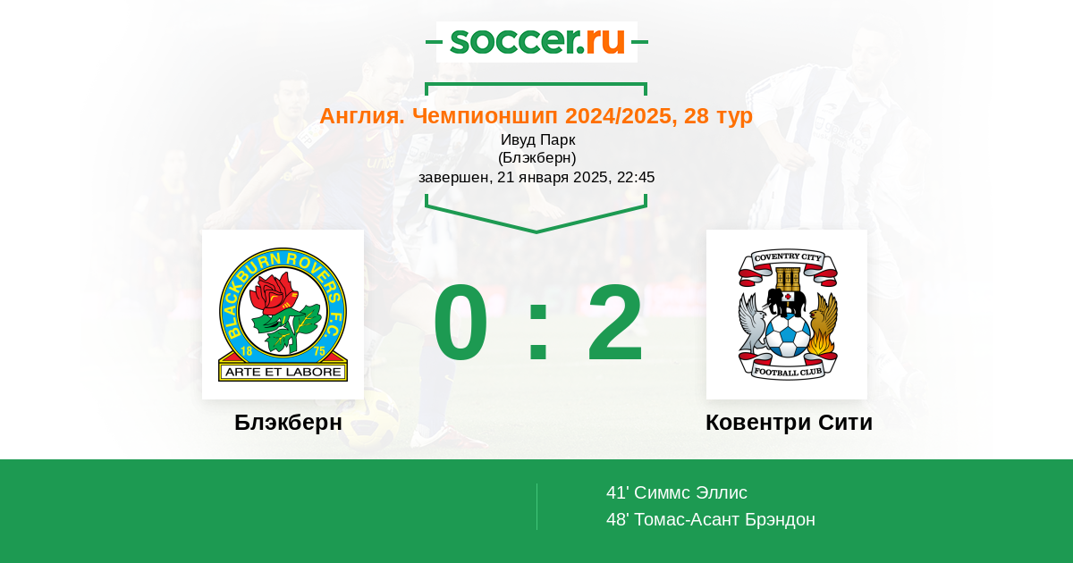 Англия. Чемпионшип 18.10.2025 Ковентри Сити Логотип футбольный клуб Ковентри Сити 2:0 Логотип футбольный клуб Блэкберн Блэкберн