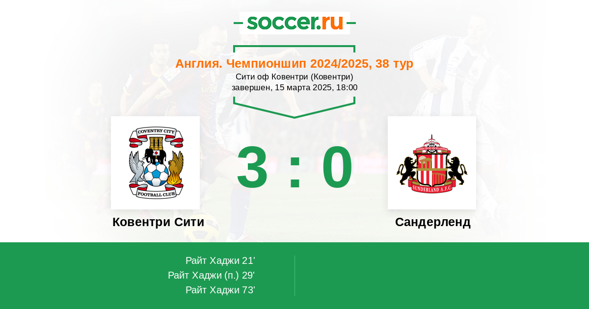 Англия. Чемпионшип 13.05.2025 Сандерленд Логотип футбольный клуб Сандерленд 1:1 Логотип футбольный клуб Ковентри Сити Ковентри Сити