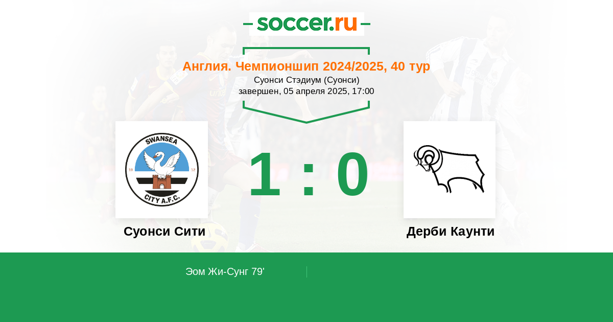 Англия. Чемпионшип 25.11.2025 Суонси Сити Логотип футбольный клуб Суонси Сити 1:2 Логотип футбольный клуб Дерби Каунти Дерби Каунти