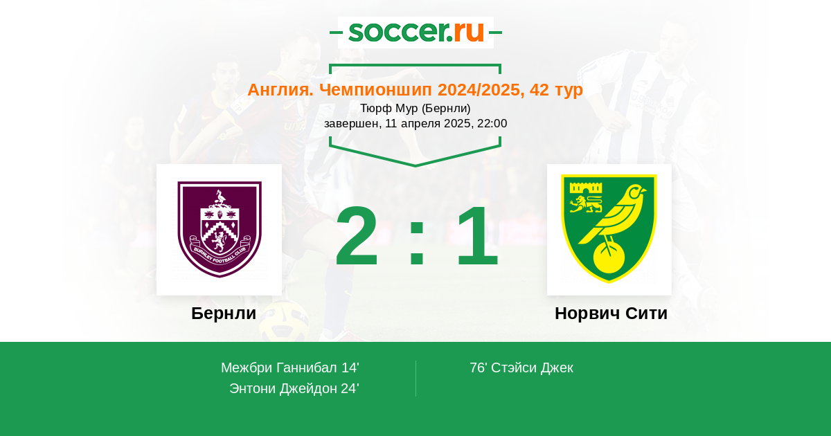 Англия. Чемпионшип 15.12.2024 Норвич Сити Логотип футбольный клуб Норвич Сити 1:2 Логотип футбольный клуб Бернли Бернли