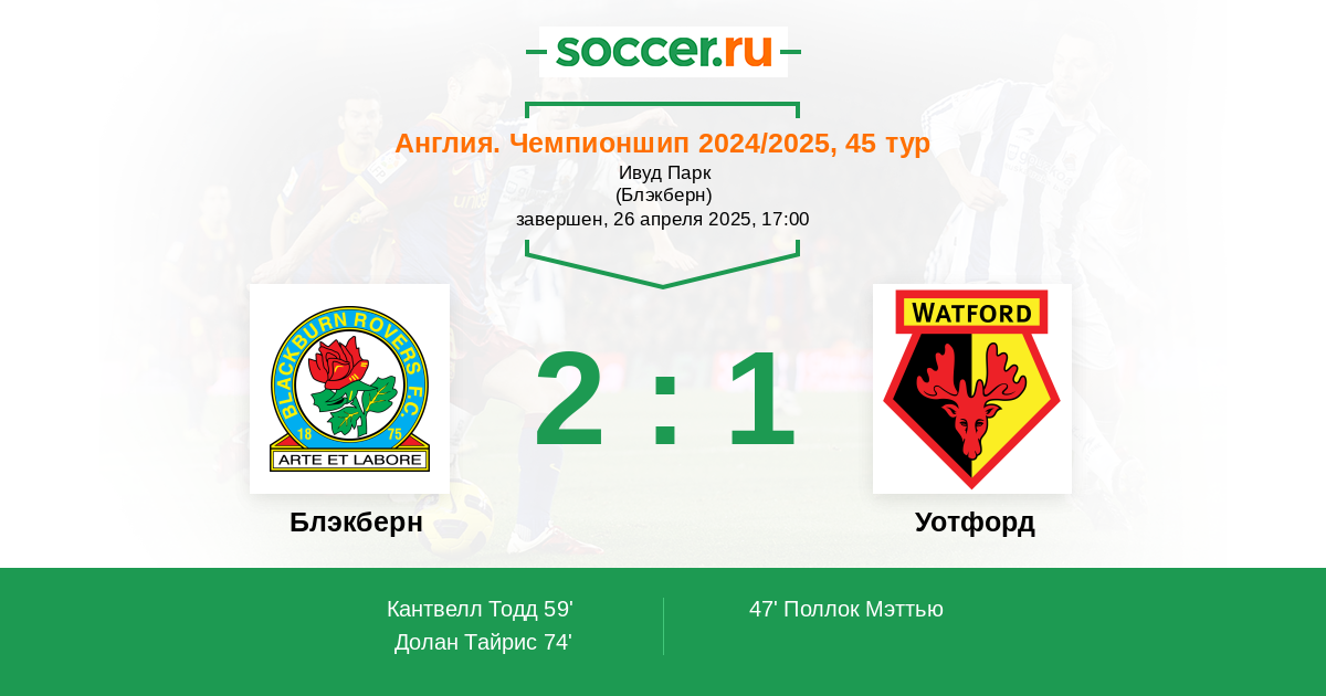 Англия. Чемпионшип 26.10.2024 Уотфорд Логотип футбольный клуб Уотфорд 1:0 Логотип футбольный клуб Блэкберн Блэкберн