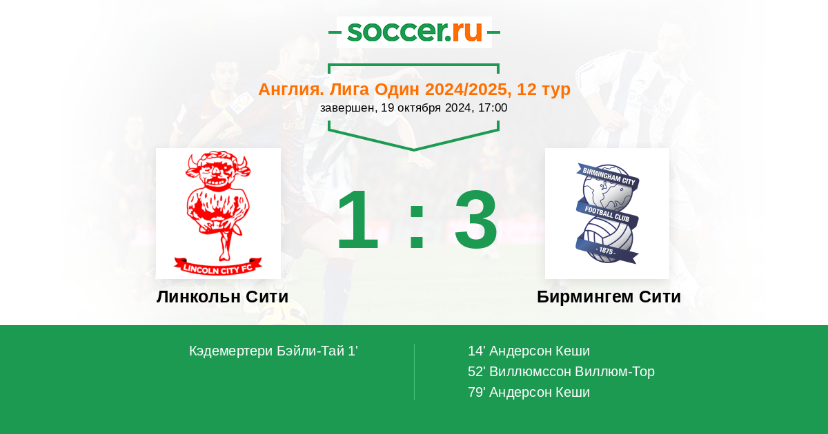 Линкольн Сити 1:3 0:0 1:3