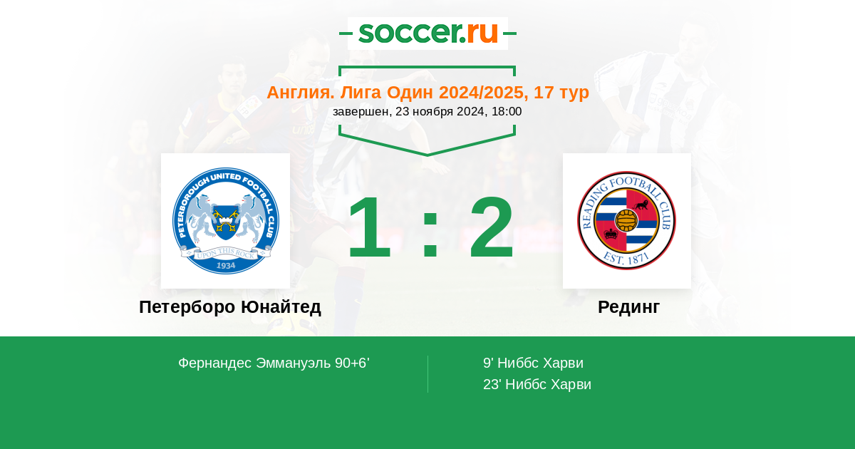 Англия. Первая Футбольная Лига 26.12.2023 Петерборо Юнайтед Логотип футбольный клуб Петерборо Юнайтед 2:2 Логотип футбольный клуб Рединг Рединг