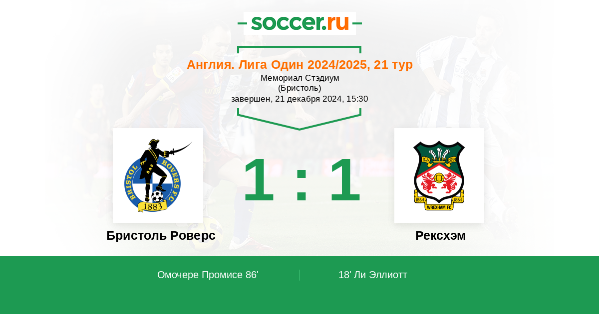 Бристоль Роверс 1:1 0:0 1:1