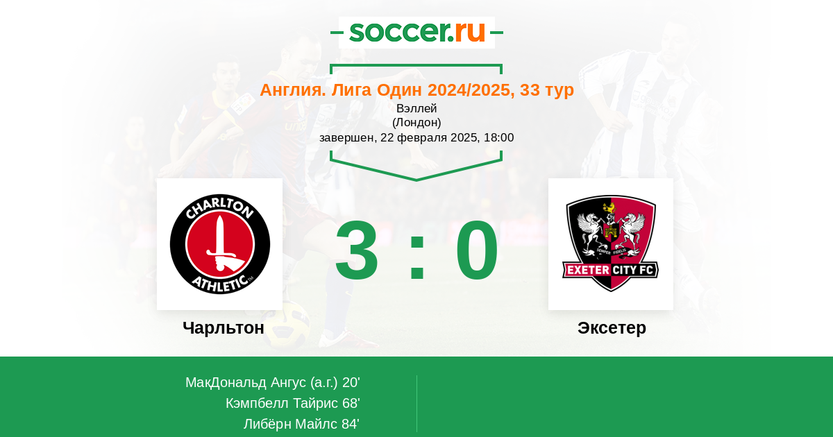 Чарльтон 13:7 8:3 5:4