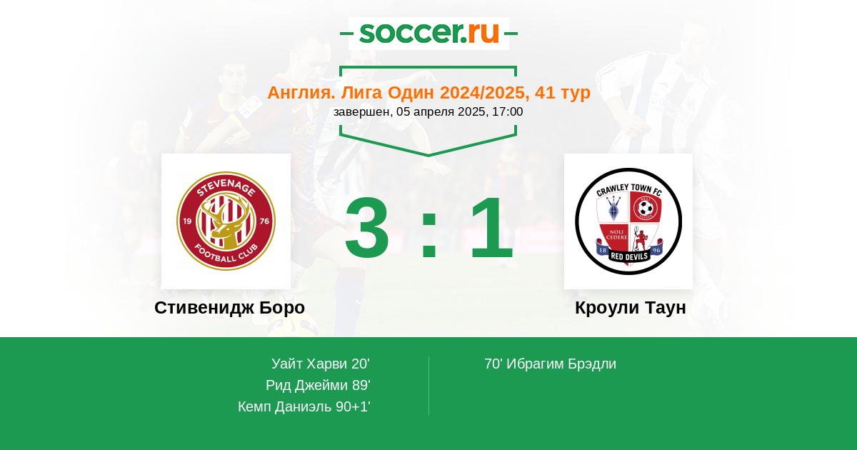 Англия. Первая Футбольная Лига 11.02.2025 Кроули Таун Логотип футбольный клуб Кроули Таун 3:1 Логотип футбольный клуб Стивенидж Боро (Стивэнейдж) Стивенидж Боро