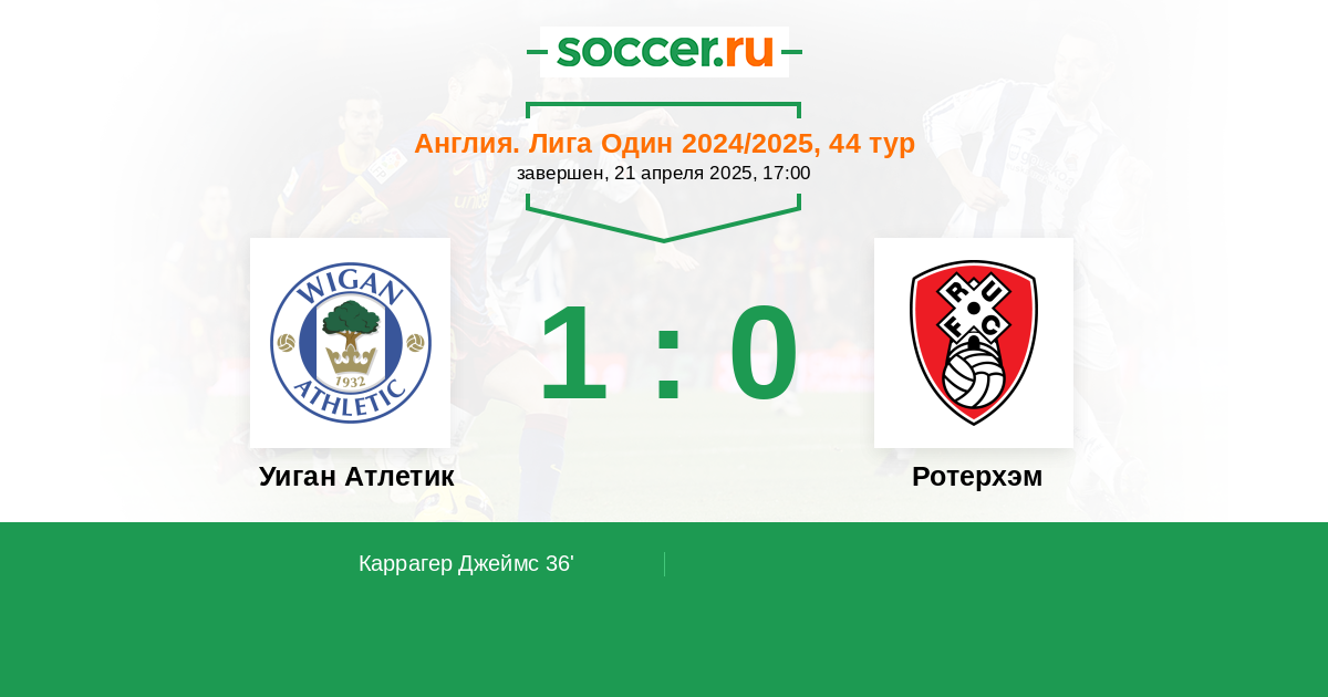 Англия. Первая Футбольная Лига 14.04.2018 Уиган Атлетик Логотип футбольный клуб Уиган Атлетик 0:0 Логотип футбольный клуб Ротерхэм (Шеффилд) Ротерхэм