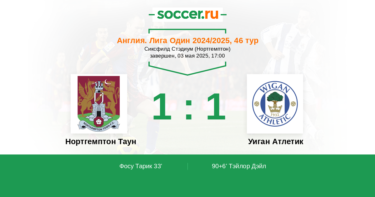 Англия. Первая Футбольная Лига 13.01.2024 Нортгемптон Таун Логотип футбольный клуб Нортгемптон Таун 1:1 Логотип футбольный клуб Уиган Атлетик Уиган Атлетик