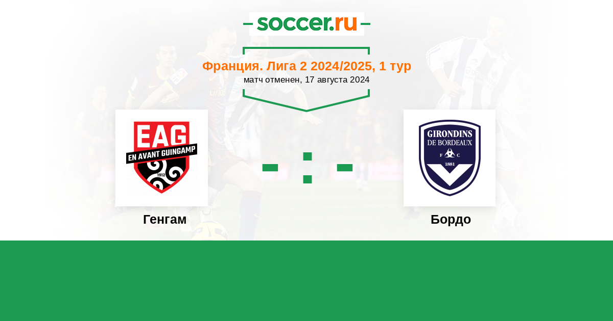 Франция. Лига 2 26.09.2023 Генгам Логотип футбольный клуб Генгам 0:0 Логотип футбольный клуб Бордо Бордо