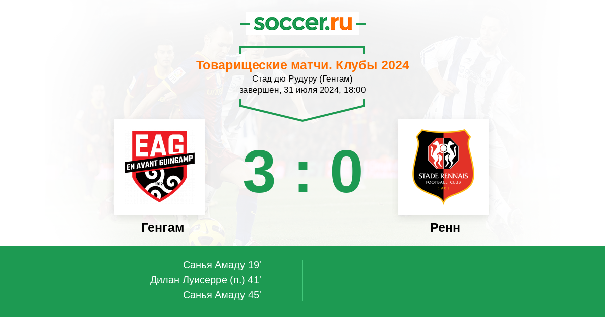 Товарищеские матчи. Клубы 30.07.2016 Ренн Логотип футбольный клуб Ренн 1:2 Логотип футбольный клуб Генгам Генгам