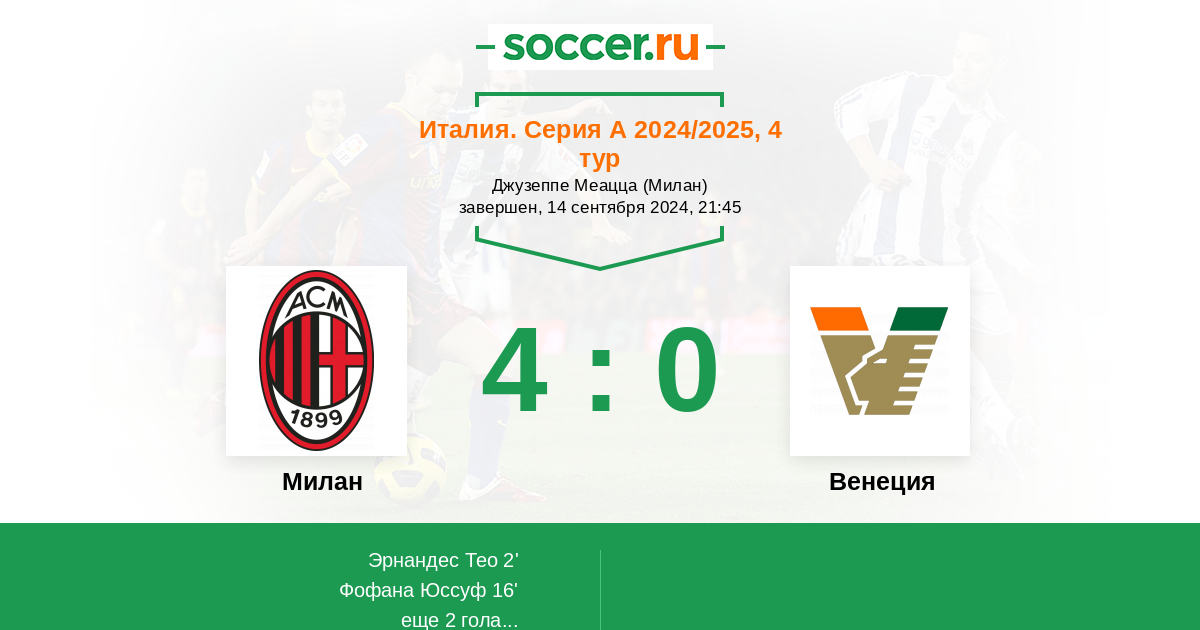 Миланская команда выглядит намного сильнее своих соперников, должна одержать победу над аутсайдером из Венеции и уж точно не позволит гостевому коллективу устроить голевой фейерверк и накидать больше трёх забитых мячей
