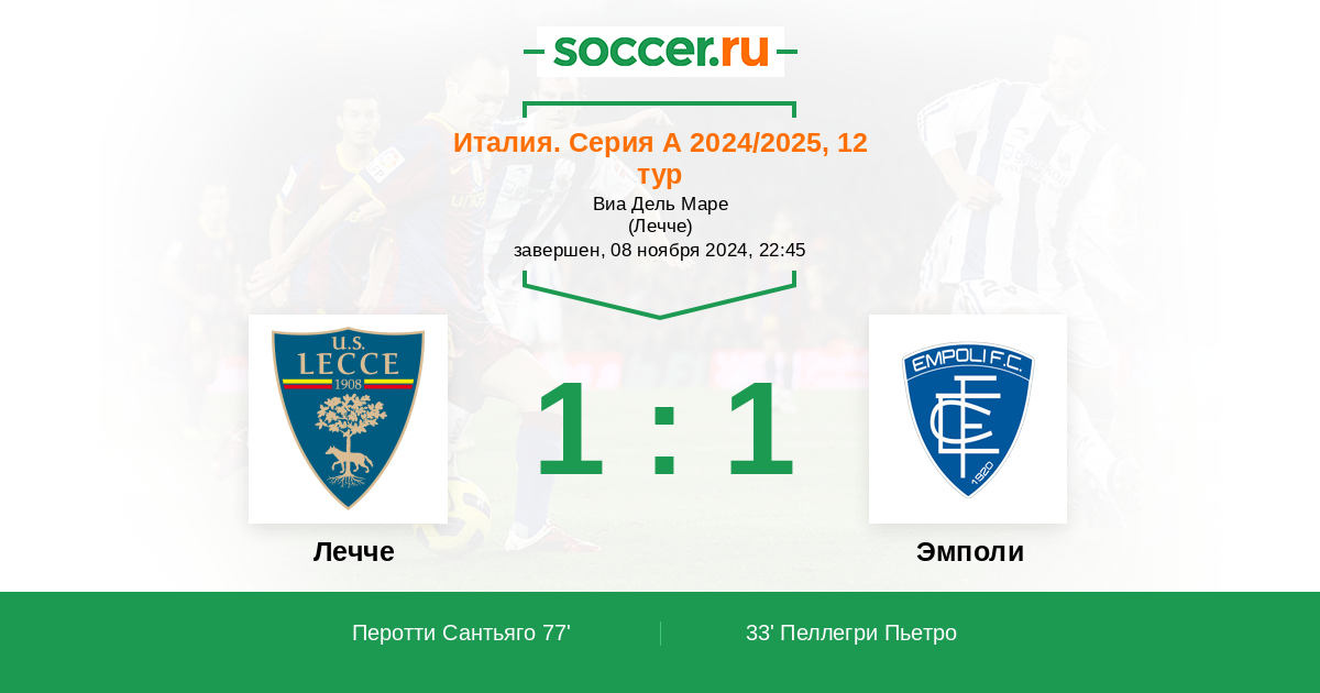 Лечче не знаю, а вот Эмполи видел только один раз, в игре с Наполи. и надо сказать, команда мне очень понравилась, да и по игре не должны были проиграть, обидно.