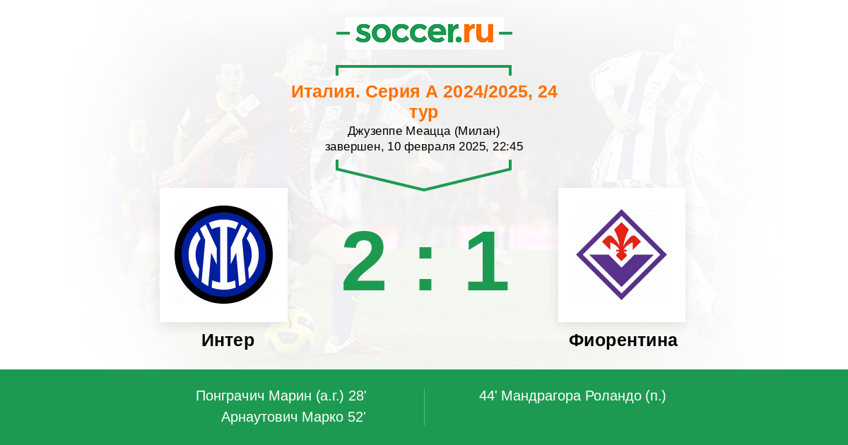 Победа в предстоящей встрече важна для Интера и отпускать в отрыв освобожденный от еврокубков Наполи никак нельзя. Сумеют ли Нерадзурри взять незамедлительный реванш у своих обидчиков, или набравшая ход Фиорентина вновь вставит палки в колеса действующему чемпиону?