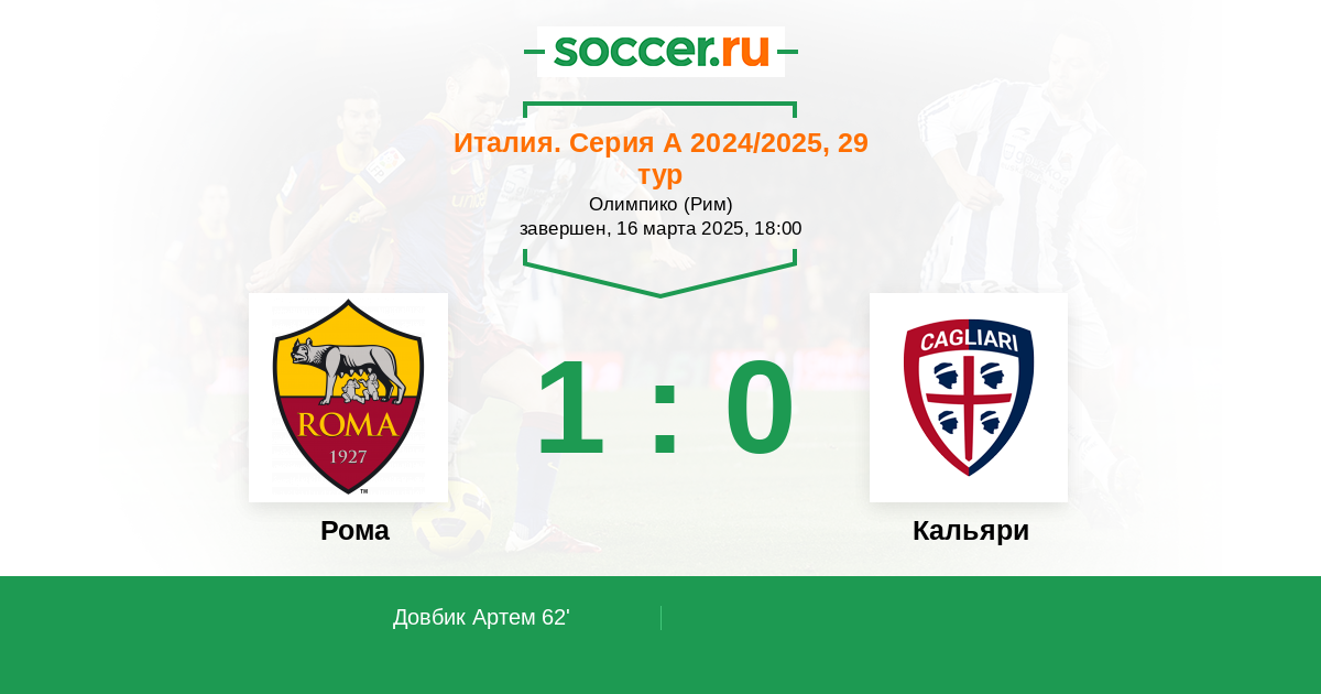 Италия. Серия А 05.02.2024 Рома Логотип футбольный клуб Рома (Рим) 4:0 Логотип футбольный клуб Кальяри Кальяри