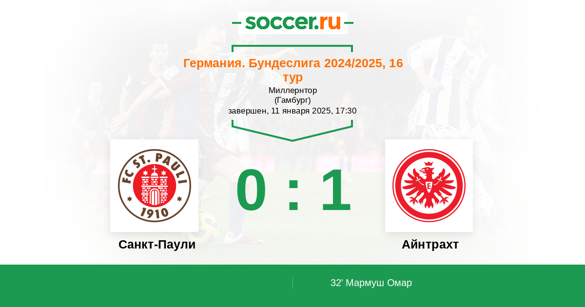 Германия. Бундеслига 25.10.2025 Айнтрахт Логотип футбольный клуб Айнтрахт (Франкфурт) 2:0 Логотип футбольный клуб Санкт-Паули (Гамбург) Санкт-Паули