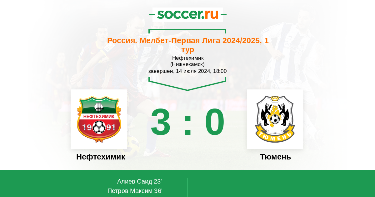 Россия. Первая лига 28.10.2023 Нефтехимик Логотип футбольный клуб Нефтехимик (Нижнекамск) 0:2 Логотип футбольный клуб Тюмень Тюмень