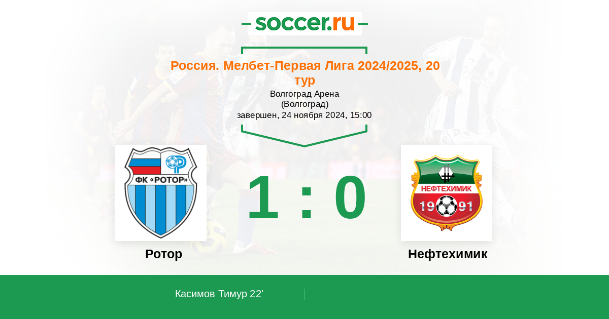 Команда хозяев выглядит несколько сильнее и предпочтительнее своих соперников, имеет больше шансов одержать победу на домашнем стадионе над гостевым коллективом и вряд ли при поддержке своей публики Ротор позволит Нефтехимику выиграть
