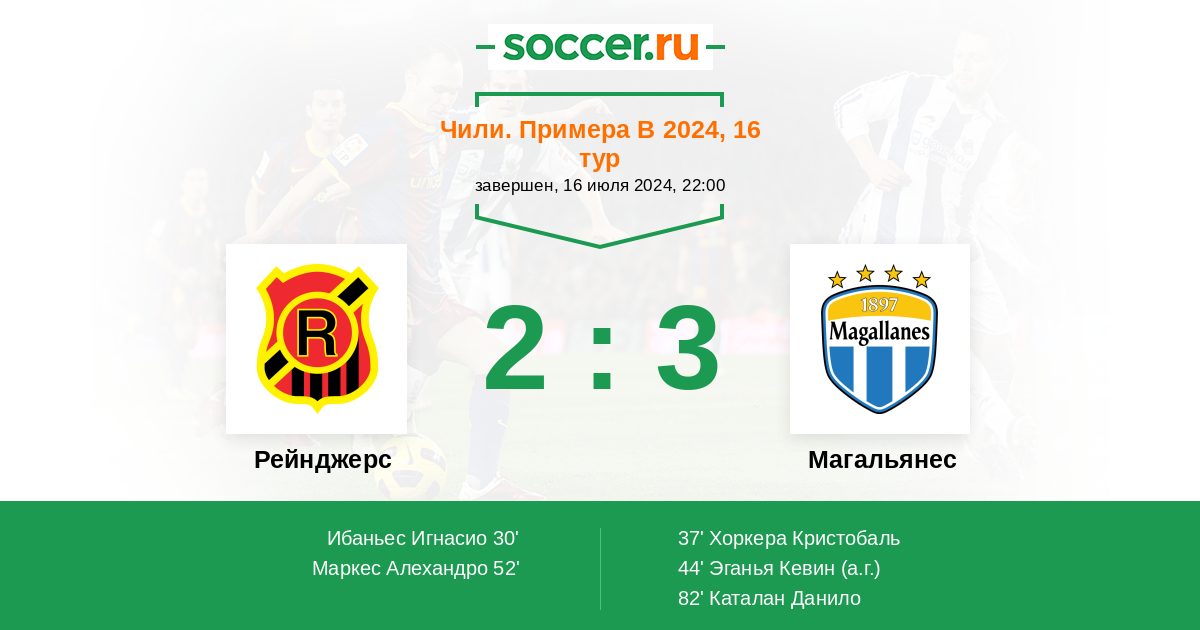Чили. Примера В 15.02.2017 Рейнджерс Логотип футбольный клуб Рейнджерс (Талька) 2:1 Логотип футбольный клуб Магальянес (Сантьяго) Магальянес