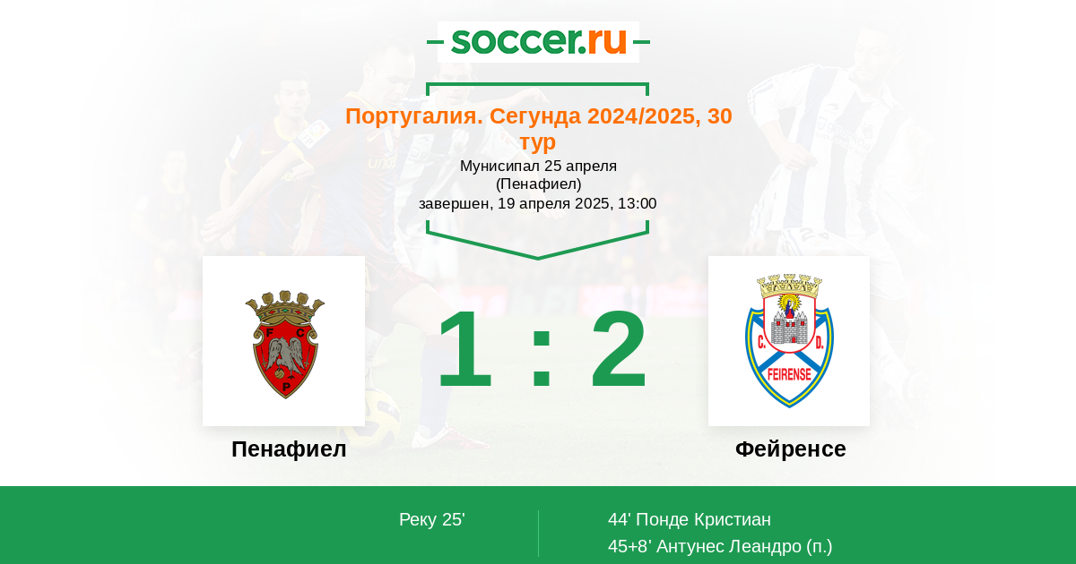 Португалия. Сегунда 24.04.2022 Пенафиел Логотип футбольный клуб Пенафиел 2:0 Логотип футбольный клуб Фейренсе (Санта-Мария-да-Фейра) Фейренсе