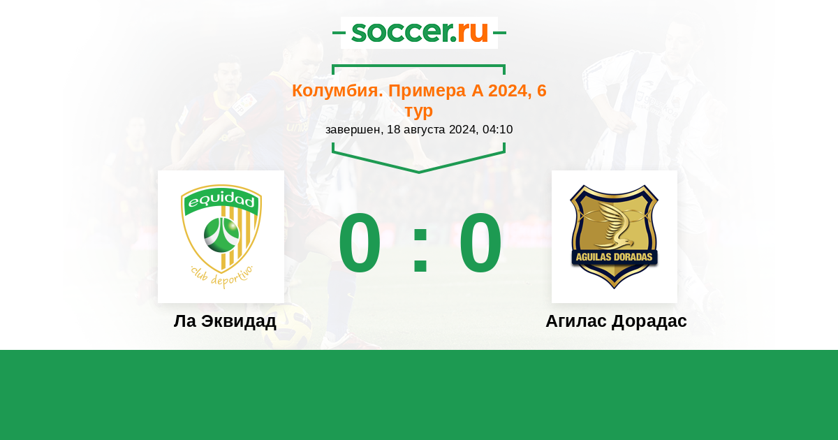 Колумбия. Примера А 11.10.2019 Агилас Дорадас Логотип футбольный клуб Агилас Дорадас (Рионегро) 0:0 Логотип футбольный клуб Ла Эквидад (Богота) Ла Эквидад