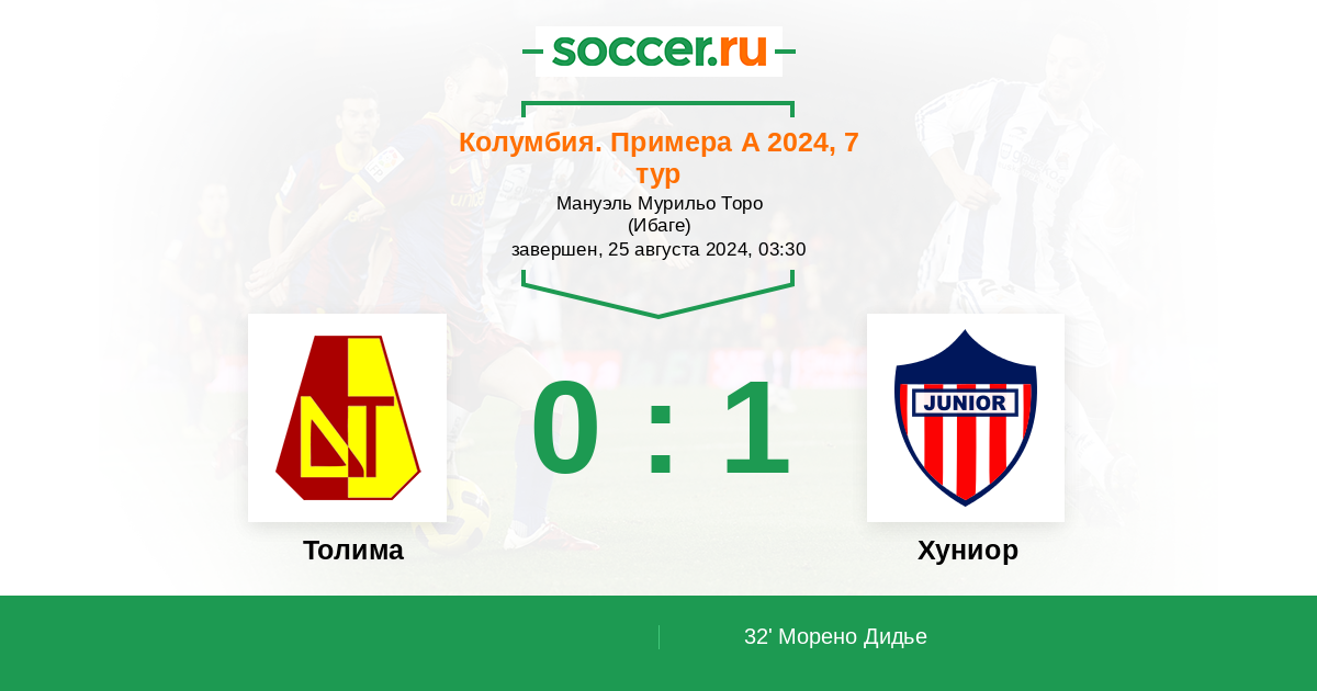 Колумбия. Примера А 25.09.2023 Хуниор Логотип футбольный клуб Хуниор (Барранкилья) 0:1 Логотип футбольный клуб Толима (Ибаге) Толима