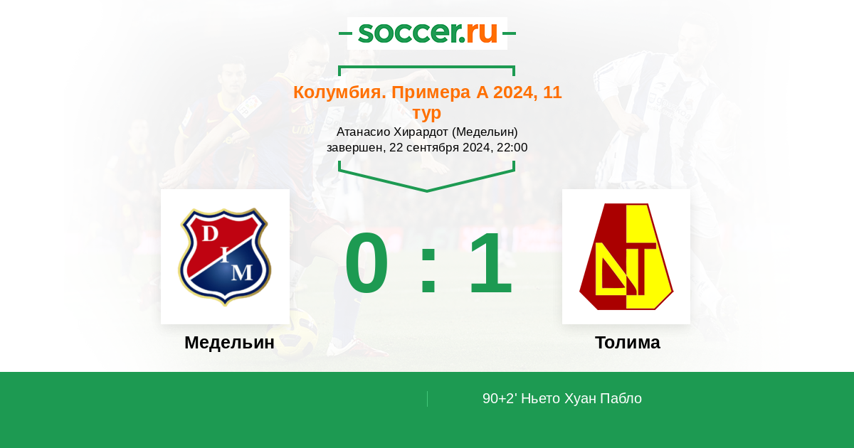Колумбия. Примера А 24.01.2022 Медельин Логотип футбольный клуб Медельин 1:0 Логотип футбольный клуб Толима (Ибаге) Толима