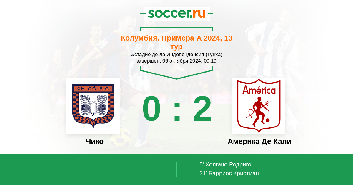 Колумбия. Примера А 24.03.2024 Америка Де Кали Логотип футбольный клуб Америка Де Кали 3:2 Логотип футбольный клуб Чико (Тунха) Чико