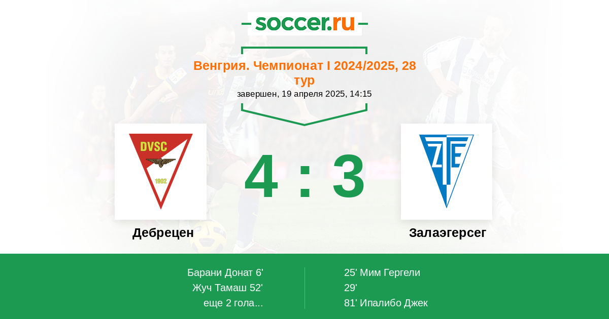 Венгрия. Чемпионат 1 14.12.2024 Залаэгерсег Логотип футбольный клуб Залаэгерсег 2:1 Логотип футбольный клуб Дебрецен Дебрецен