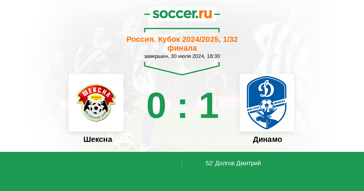 Россия. Кубок 30.07.2024 Шексна Логотип футбольный клуб Шексна (Череповец) 0:1 Логотип футбольный клуб Динамо Вологда Динамо Вологда