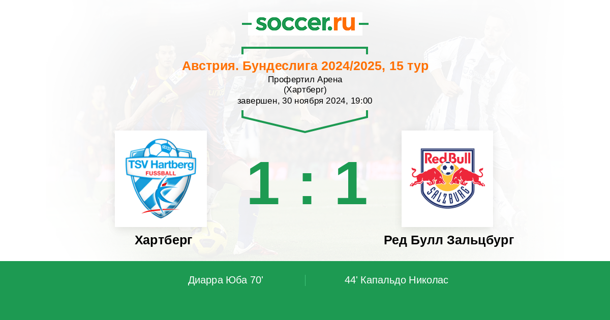 Австрия. Бундеслига 28.08.2021 Хартберг Логотип футбольный клуб Хартберг 0:1 Логотип футбольный клуб Ред Булл Зальцбург Ред Булл Зальцбург