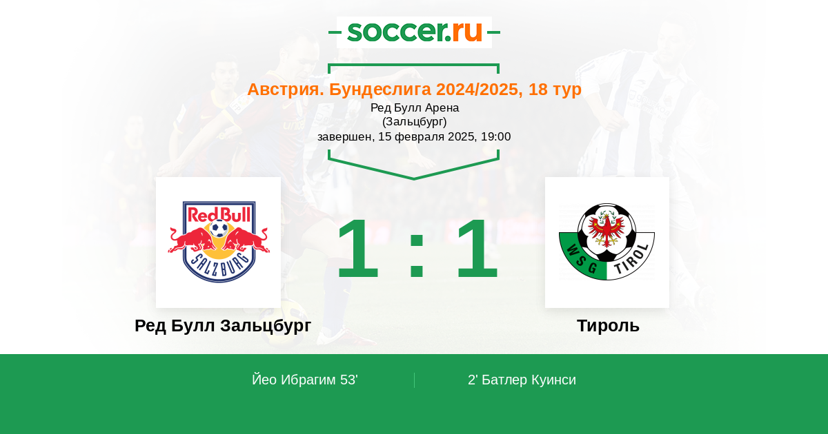 Австрия. Бундеслига 28.09.2025 Тироль Логотип футбольный клуб Тироль (Ваттенс) 1:2 Логотип футбольный клуб Ред Булл Зальцбург Ред Булл Зальцбург