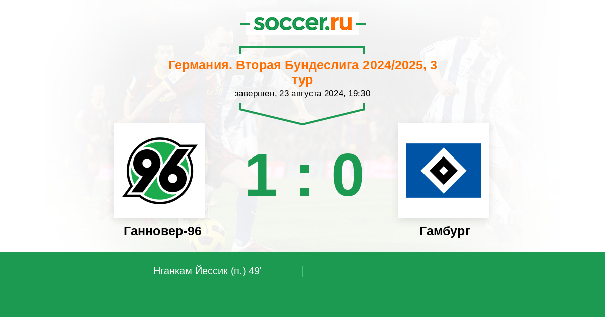 Германия. Бундеслига 2 26.08.2023 Ганновер-96 Логотип футбольный клуб Ганновер-96 0:1 Логотип футбольный клуб Гамбург Гамбург