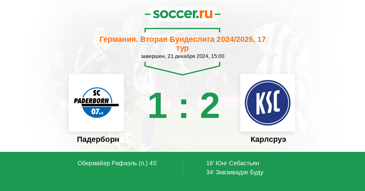 Германия. Бундеслига 2 13.12.2025 Карлсруэ Логотип футбольный клуб Карлсруэ 0:4 Логотип футбольный клуб Падерборн Падерборн