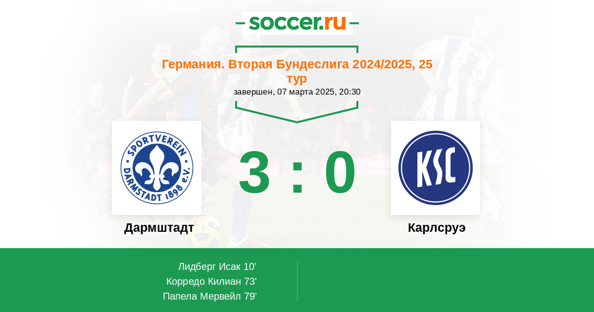 Германия. Бундеслига 2 06.12.2025 Дармштадт Логотип футбольный клуб Дармштадт 3:2 Логотип футбольный клуб Карлсруэ Карлсруэ