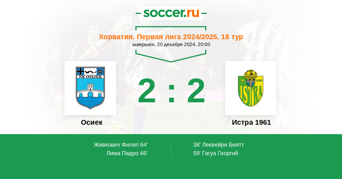 Хорватия. Первая лига 16.12.2017 Истра 1961 Логотип футбольный клуб Истра 1961 (Пула) 1:1 Логотип футбольный клуб Осиек Осиек