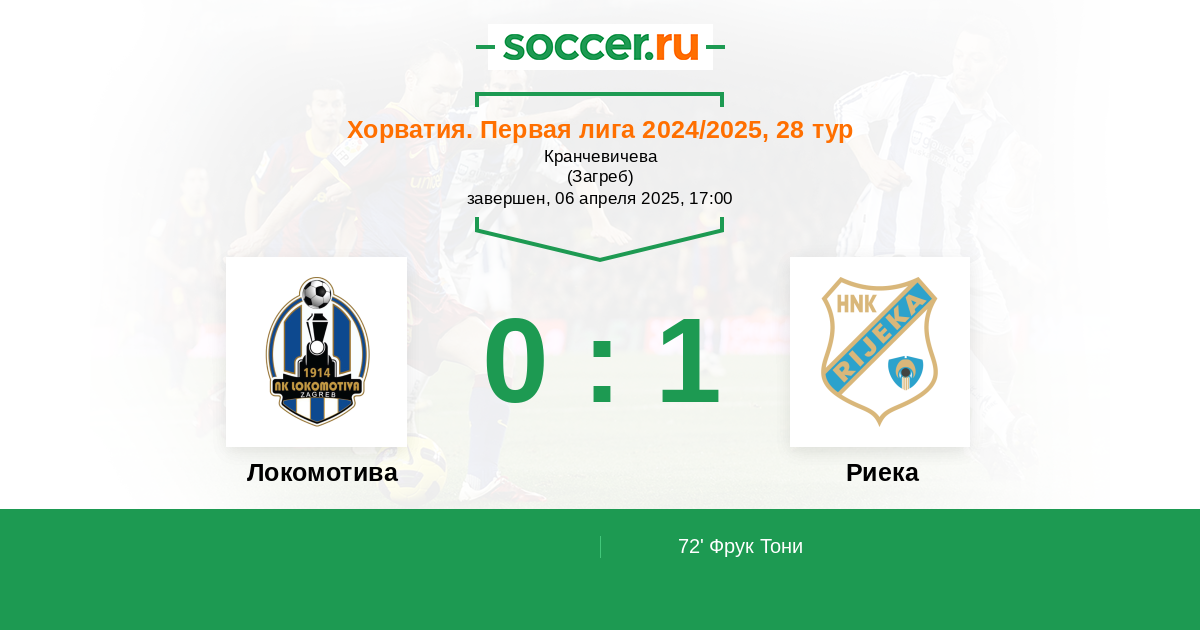 Хорватия. Первая лига 16.04.2022 Локомотива Логотип футбольный клуб Локомотива (Загреб) 2:1 Логотип футбольный клуб Риека Риека