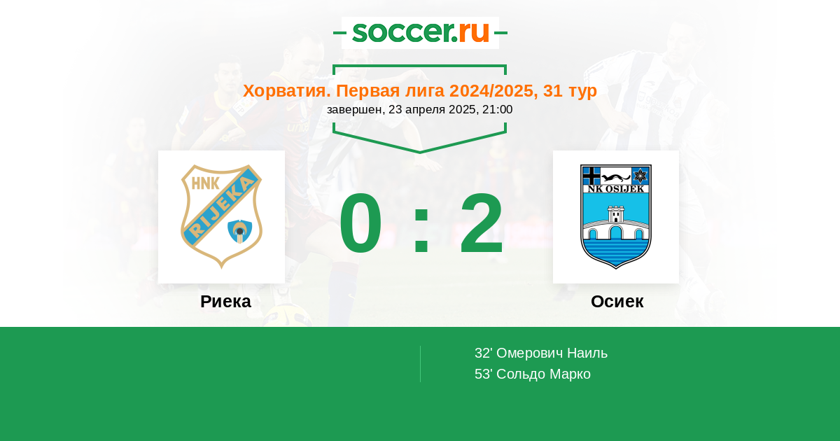 Хорватия. Первая лига 16.02.2025 Осиек Логотип футбольный клуб Осиек 0:2 Логотип футбольный клуб Риека Риека