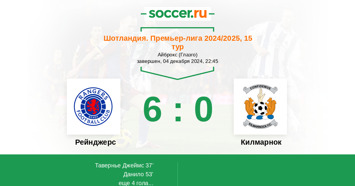 Шотландия. Премьер-Лига 04.02.2026 Рейнджерс Логотип футбольный клуб Рейнджерс (Глазго) 5:1 Логотип футбольный клуб Килмарнок Килмарнок