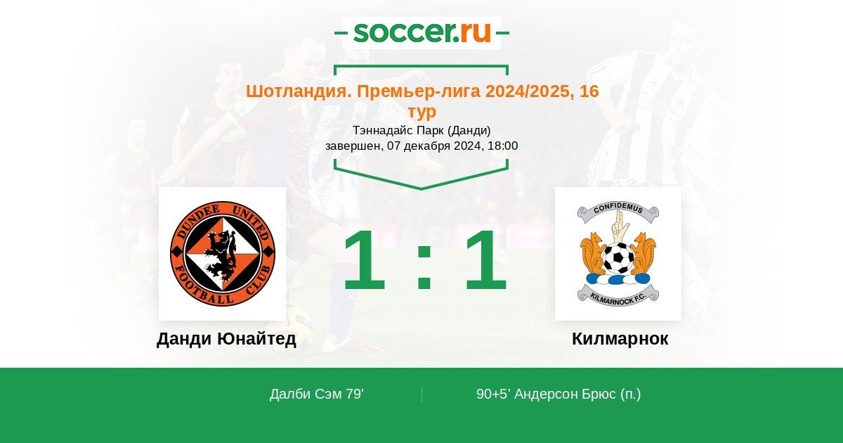Шотландия. Премьер-Лига 05.12.2015 Килмарнок Логотип футбольный клуб Килмарнок 1:1 Логотип футбольный клуб Данди Юнайтед Данди Юнайтед