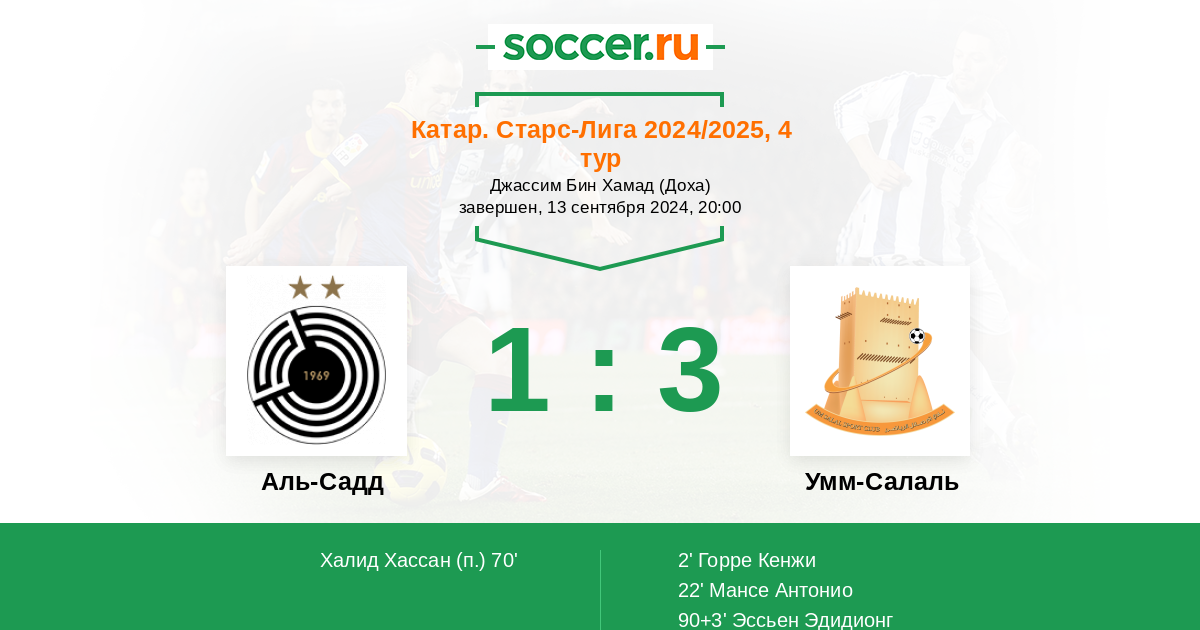Катар. Старс Лига 04.10.2013 Умм-Салаль Логотип футбольный клуб Умм-Салаль 4:4 Логотип футбольный клуб Аль-Садд (Доха) Аль-Садд
