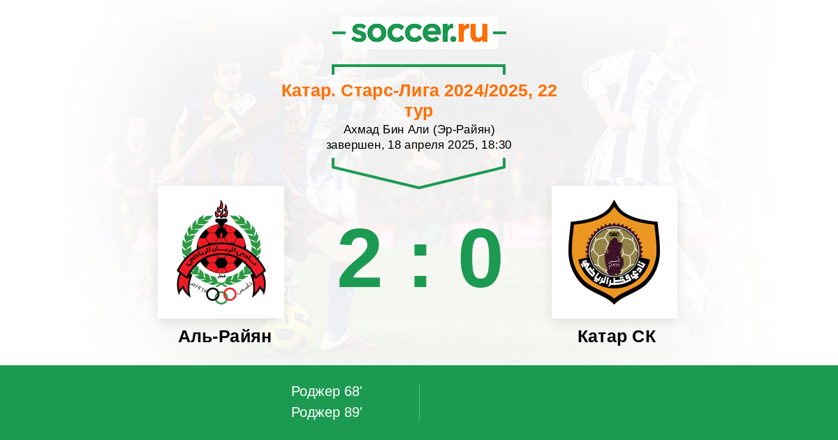 Катар. Старс Лига 19.10.2019 Аль-Райян Логотип футбольный клуб Аль-Райян 5:0 Логотип футбольный клуб Катар СК (Доха) Катар СК